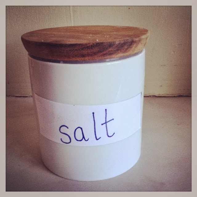 While cooking, including your child, ask him/her to pass you things like salt, sugar etc. You will have previously taken these out of the press/cupboard and have them at a safe reach for your child. After they have learned to recognise the container, cut off the label and stick it onto a jar adding in the item itself too i.e. salt, sugar… Continue to ask them to pass you these or ask them where is the salt etc.
