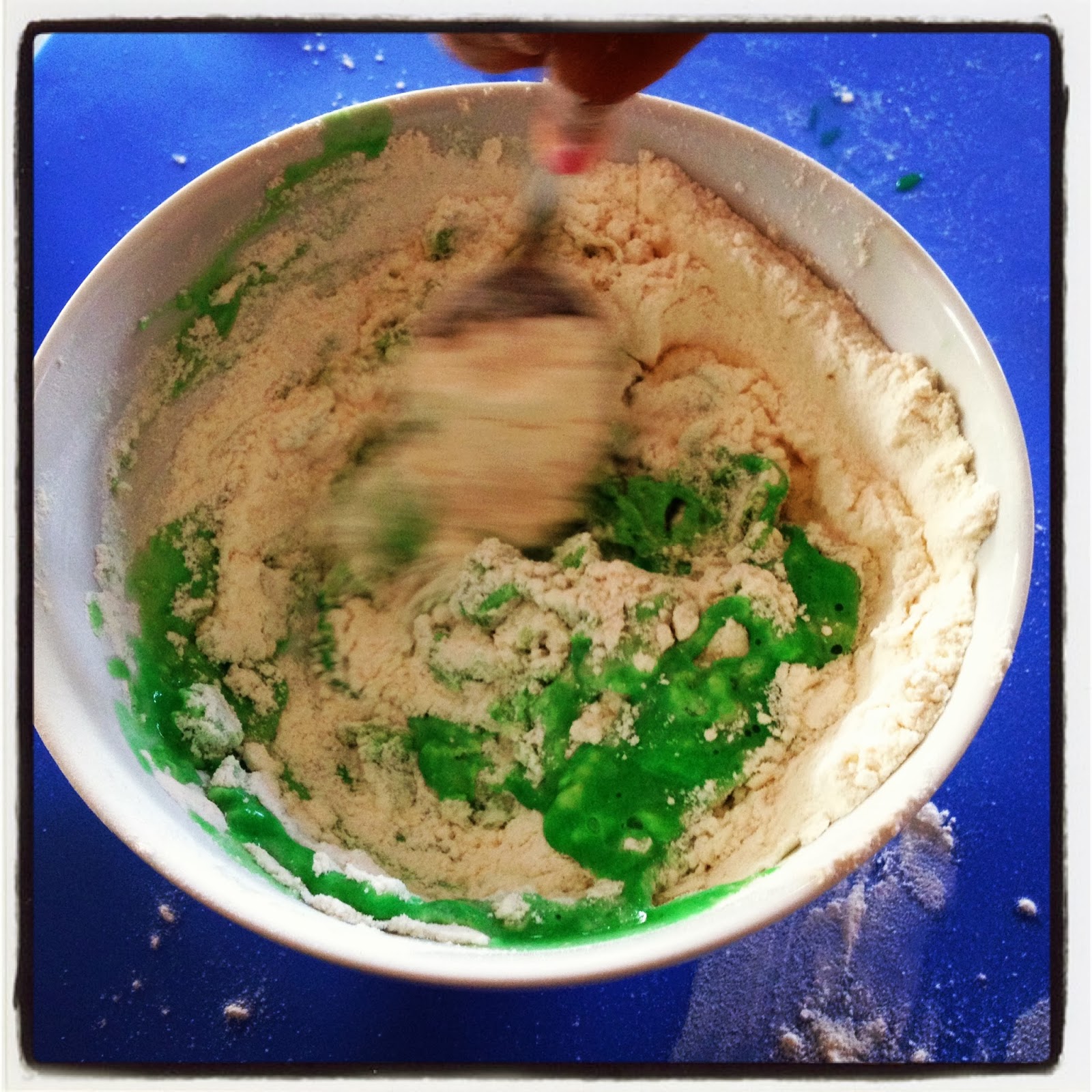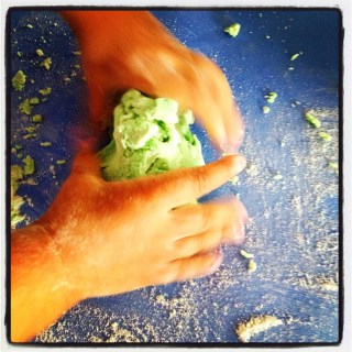MT then mixed it all together, emptied it onto our mat (with my help), kneaded it and molded it into a ball.