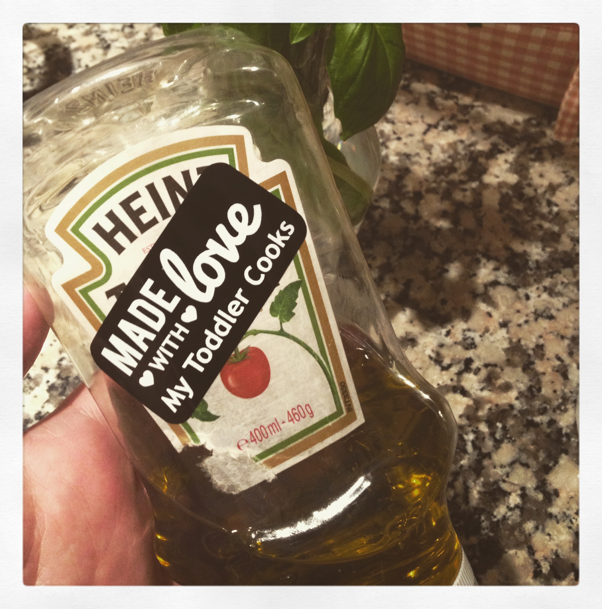 1. Use a left over ketchup bottle to put your oil into. Children can then squeeze the oil out independently rather than having you worry about them spilling or pouring too much!