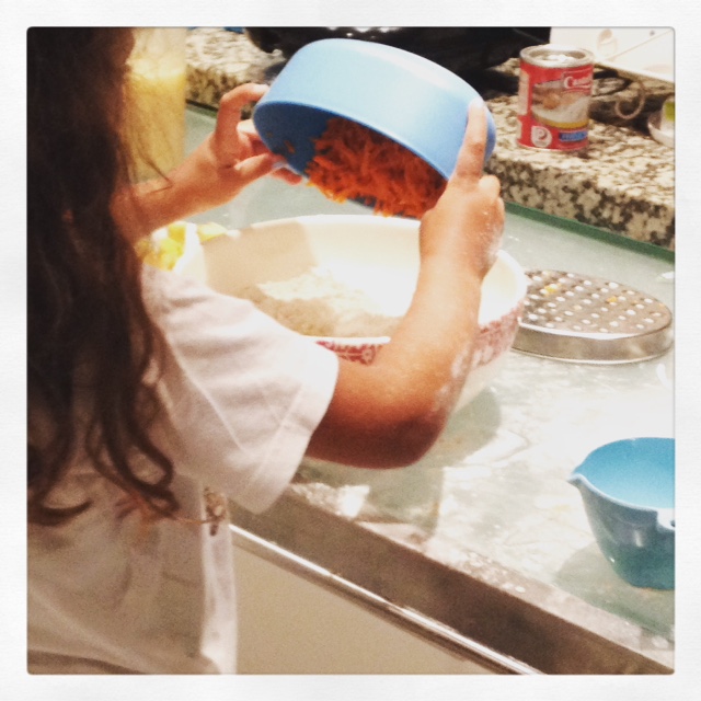 MT not only loved making these, but also eating them which was good because they’re filled with apple and carrot. We made 12 in total. We ate some for supper, some for breakfast and put others in the freezer to share with Daddy!